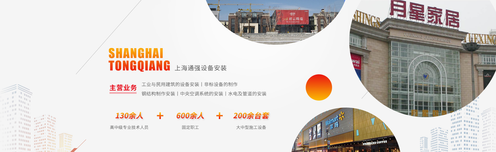 上海通強設備安裝有限公司注冊資金2000萬元,資產總量為100000萬元的專業設備安裝公司,公司專業從事工業與民用建筑的設備安裝、非標設備的制作、鋼結構制作安裝、中央空調系統的安裝,水電及管道的安裝。經過20多年艱苦創業現已成為一個具有國家二級安裝資質,獲得上海市“重合同,守信用”的施工單位。